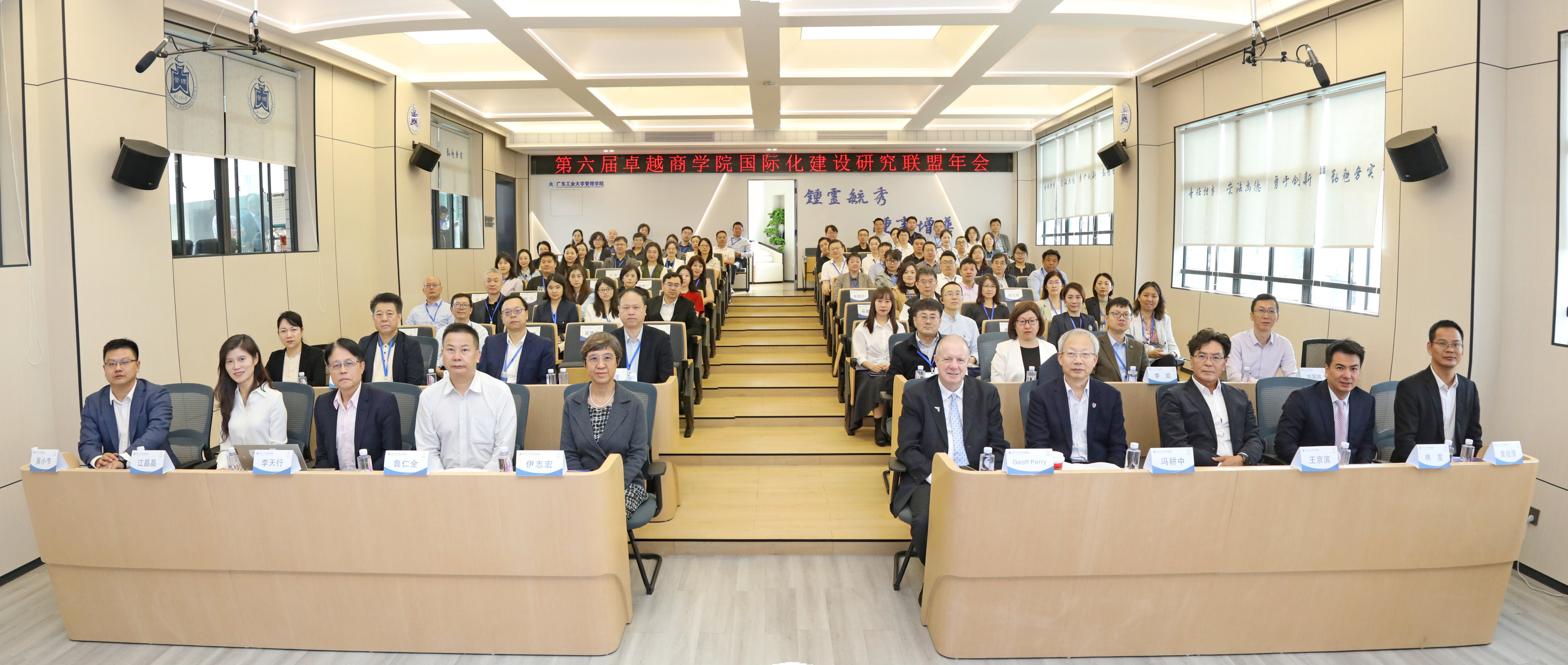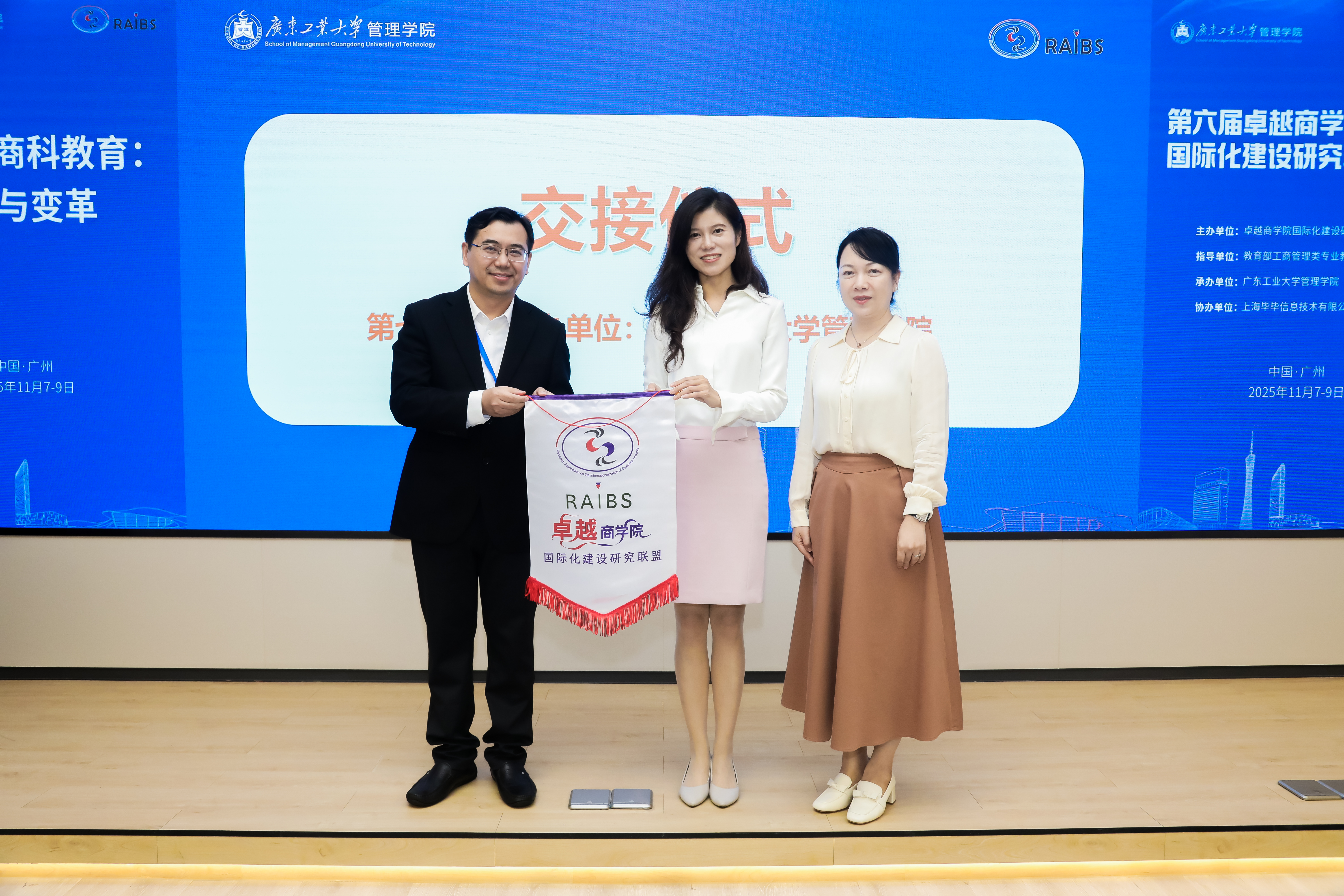 From November 7 to 9, Zhao Laijun, the dean of Business School, led a delegation to attend the 6th Annual Conference of the Research Alliance for Internationalization of Business Schools (RAIBS) held at Guangdong University of Technology. The theme of the conference was AI Reshaping Business Education: Empowerment and Transformation. The conference was hosted by the RAIBS, guided by Teaching Steering Committee for Business Administration Majors of the Ministry of Education (MOE), organized by School of Management of Guangdong University of Technology, and co-organized by Shanghai Blackboard Information Technology Co., Ltd. Liu Weiwei, vice dean of the School, members of the Internationalization Office, and representatives from USST International Affairs Office as well as Sino-British College accompanied the visit. Nearly one hundred guests from more than 40 universities nationwide participated in the conference.